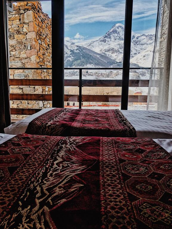 Kazbegi to miasteczko u podnóża najsłynniejszej góry Gruzji, Kazbeku, położone na wysokości 1700m n.p.m. Dojeżdża się do niego słynną gruzińską wojenną drogą, która dalej prowadzi na przejście graniczne do Rosji. Wyprawa do Kazbegi (oficjalna nazwa Stepancminda) to wyprawa sama w sobie. Po drodze z Tbilisi mijamy takie atrakcje jak twierdza Annanuri, połączenie dwóch rzek Czarnej i Białej Aragvi, ośrodek narciarski Gudauri oraz najwyżej położoną przełęcz Hvari (2400 mppm), która w zimie dyktuje swoje prawa lokalnej logistyce.